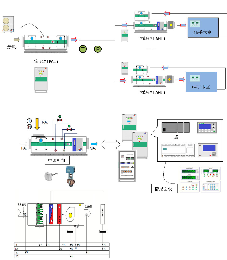 医疗洁净控制解决方案 功能 1.送回风温湿度实时监测; 2.新排风温湿度实时监测; 3.室内温湿度检测(多点); 4.送回风机运行状态监测; 5.风阀开度实时监测; 6.冷热水、加湿阀、电加热、蒸汽加热阀开度控制及其监测; 7.送回风机启停及变频调速; 8.全年多焓值节能分区控制; 9.过滤器脏堵报警、缺风保护、高低压报警、消防连锁; 返回列表 打印 分享 上一篇T2018-07-20上一篇:工业人工环境控制解决方案 下一篇T2018-07-20下一篇:商用空调控制解决方案